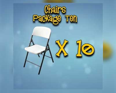 Save a little cash when renting chairs in bulk! This package is for ten (10) heavy duty white folding chairs.